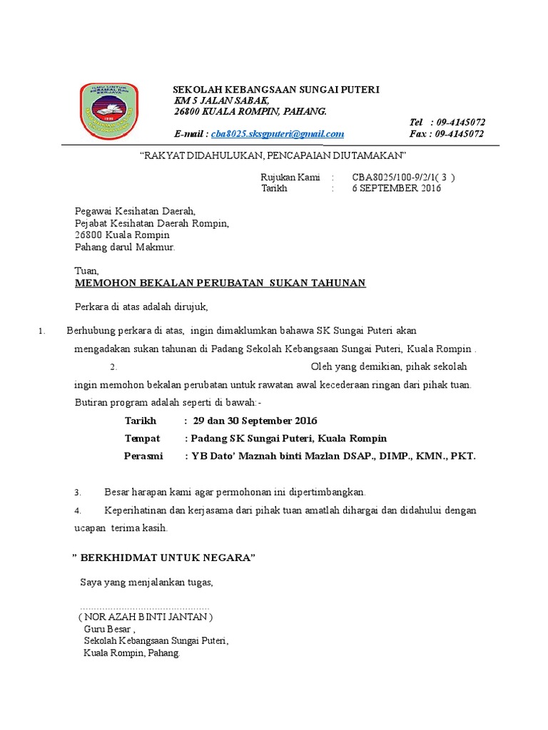 Surat Permohonan Kelulusan Projek Free Meals Canteen Pdf