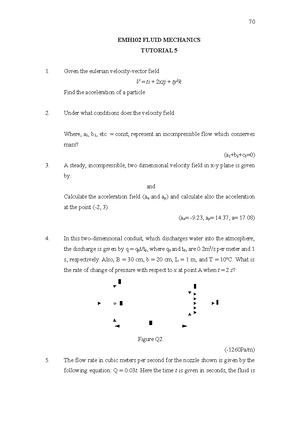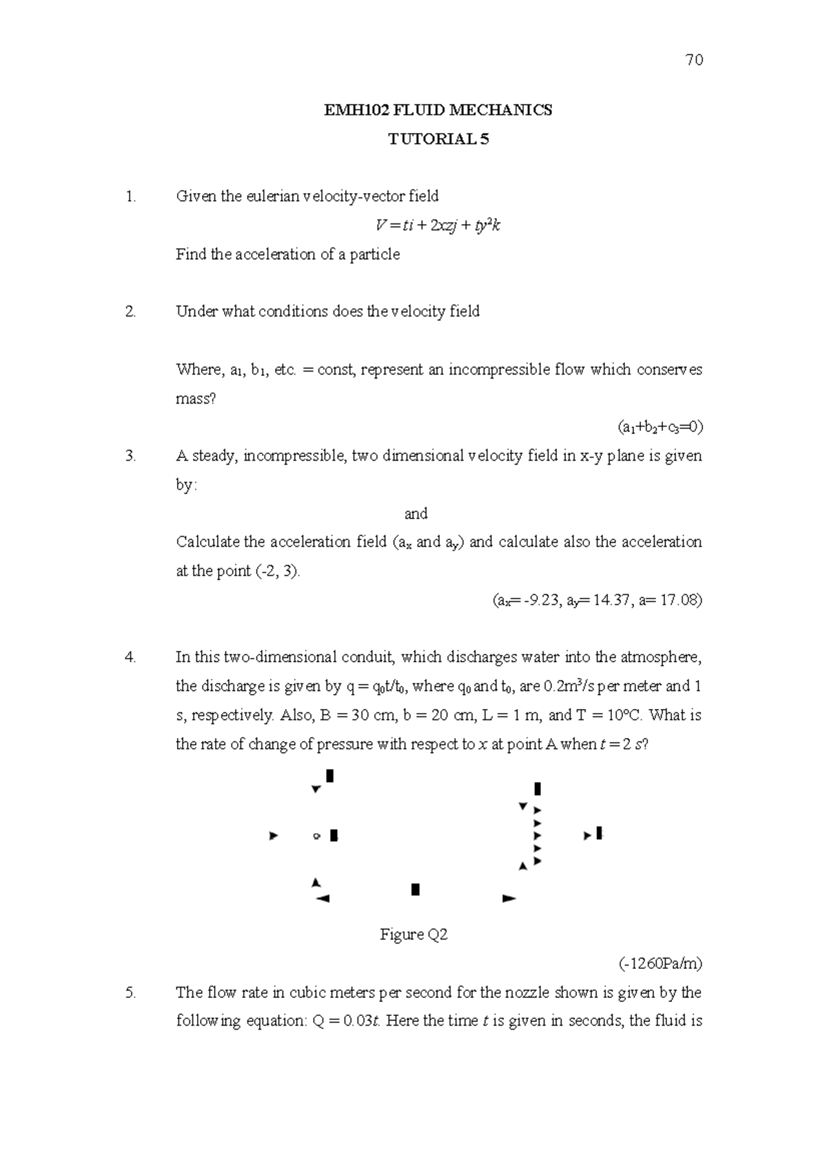Emh102 Tutorial 5 Question Emh102 Fluid Mechanics Tutorial 5 Given The Eulerian Velocity Vector Studocu