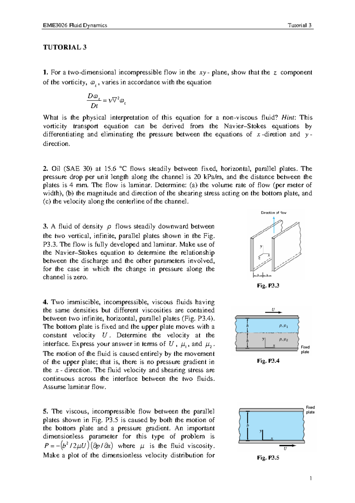 145497 Eme3026 Tutorial 3 Eme3026 Fluid Dynamics Tutorial 3 Tutorial 3 1 For A Incompressible Studocu